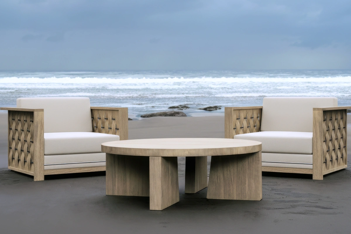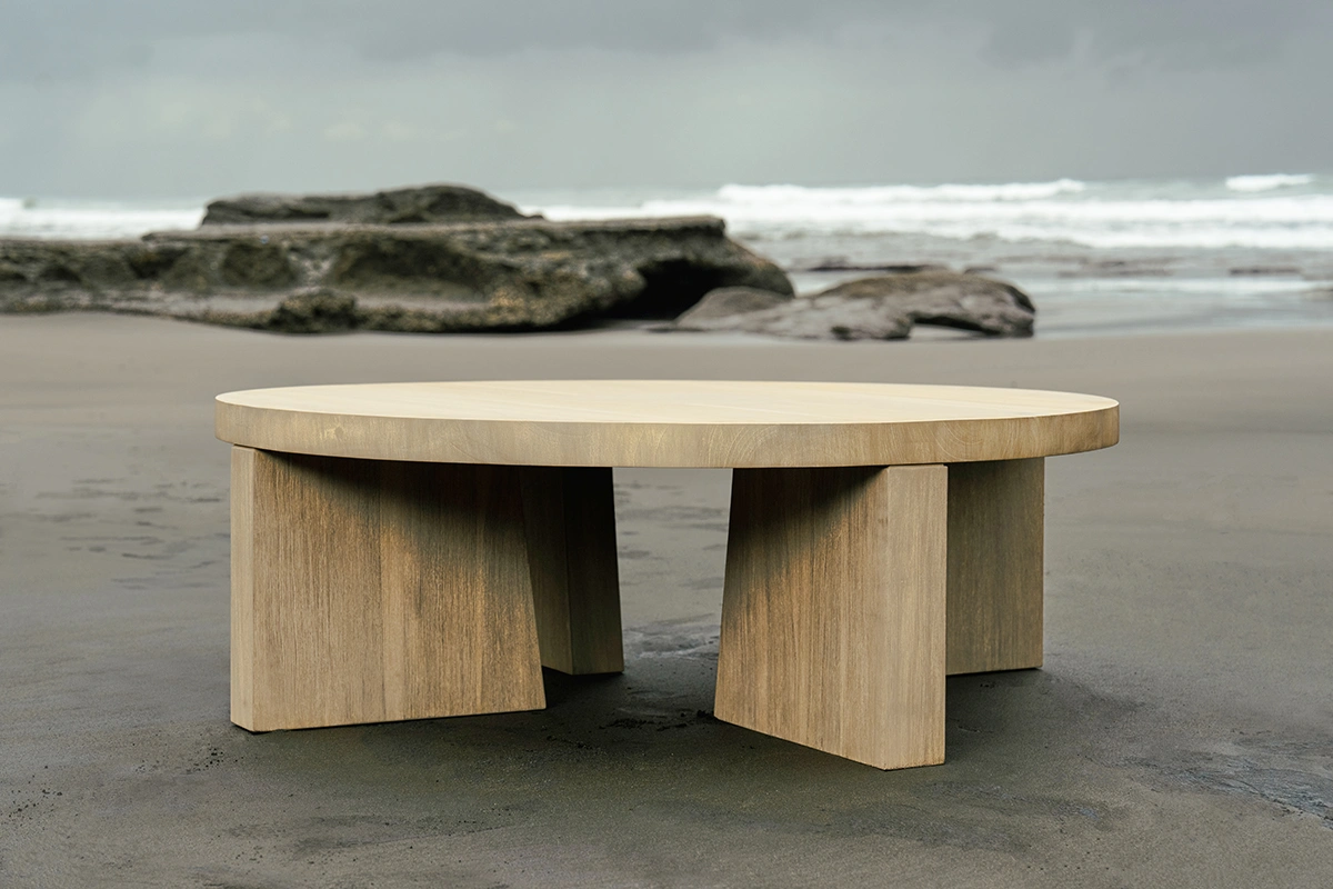 Constructed from solid, sustainably sourced teak, this coffee table combines natural warmth with understated elegance. Its simple silhouette and smooth, refined surfaces make it a versatile centrepiece that complements any outdoor furniture arrangement